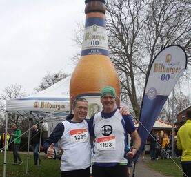 Bei Temperaturen, die auf den kommenden Frühling hinwiesen, beendeten unsere Lauffreunde Marko und Peter das Laufjahr 2022. Entsprechend leicht bekleidet gingen sie an den Start, zwei prominente Mitläufer (Weltmeister in der Altersklasse 85 und älter sowie im Rückwärtslaufen) bescherten einen zusätzlichen Motivationsschub. Wie immer drehte Peter mit der ihm eigenen Gelassenheit seine Runden (1:04:11), wogegen Marko voll aufdrehte mit dem Ziel, einmal im Leben einen Weltmeister zu besiegen. Dieses Vorhaben gelang, der 85jährige konnte sein Tempo nicht mitlaufen, nach 56:26 erreichte Marko die Ziellinie. Die Laufgruppe gratuliert.