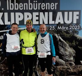 Nach 3jähriger Wartezeit fand am 25. März die lang erwartete neunte Auflage des Klippenlaufes mit Start und Ziel in Ibbenbüren statt. Der Name dieser Veranstaltung weist schon auf ihre Besonderheit hin, insgesamt müssen die Läufer eine Strecke von 24.7 km mit 9 Klippen und 500 Höhenmetern bewältigen. Obwohl der Wetterbericht nichts Gutes erwarten ließ, machten sich auch 3 Mitglieder unserer Laufgruppe auf, um den Regenschauern mit Windböen sowie einem aufgeweichten Waldboden zu trotzen. Alle erreichten das Ziel, unser Vorläufer Hermann kam dort erwartungsgemäß als Gruppenerster an (2:39, 2. Platz in der Altersklasse). Es folgte mit einer Zeit von 2:50 Marko, 8 Minuten später vereinte Klaus das Trio hinter der Ziellinie. Nach diesem gelungenen Aufgalopp wird in diesem Jahr sicherlich auch von weiteren Läufen zu berichten sein.